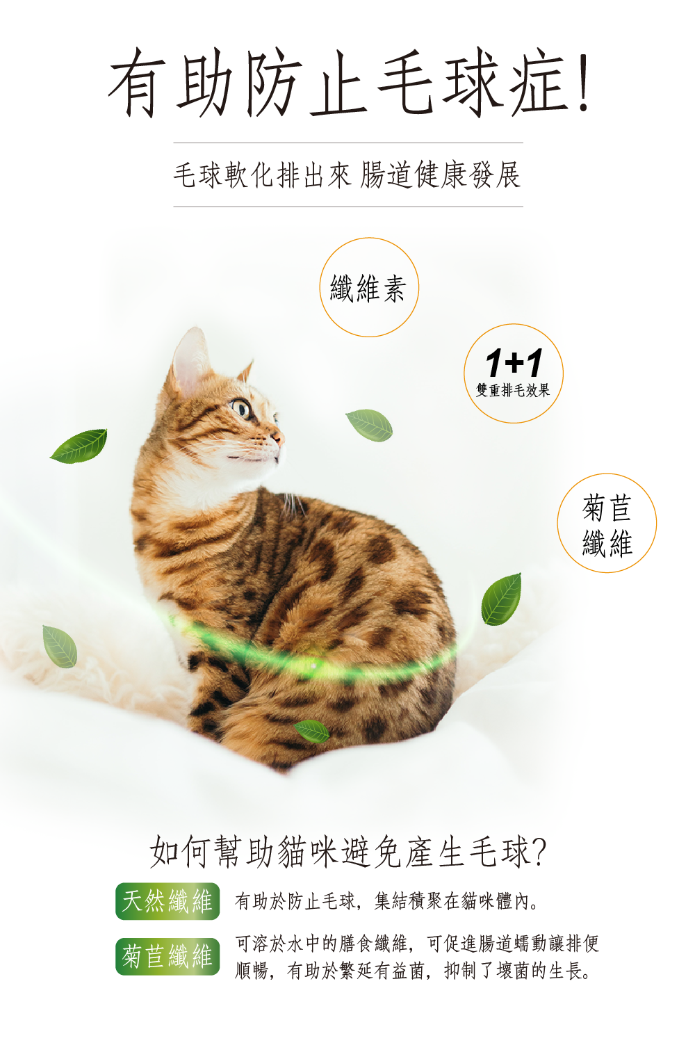 2. 高纖易消化,軟化貓毛不結球 - 菊苣纖維