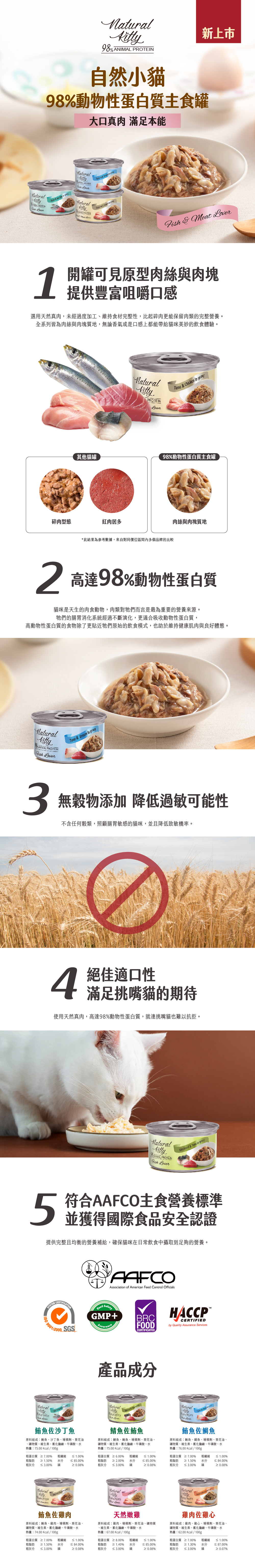 【自然小貓 98%動物性蛋白質主食罐系列】新上市!