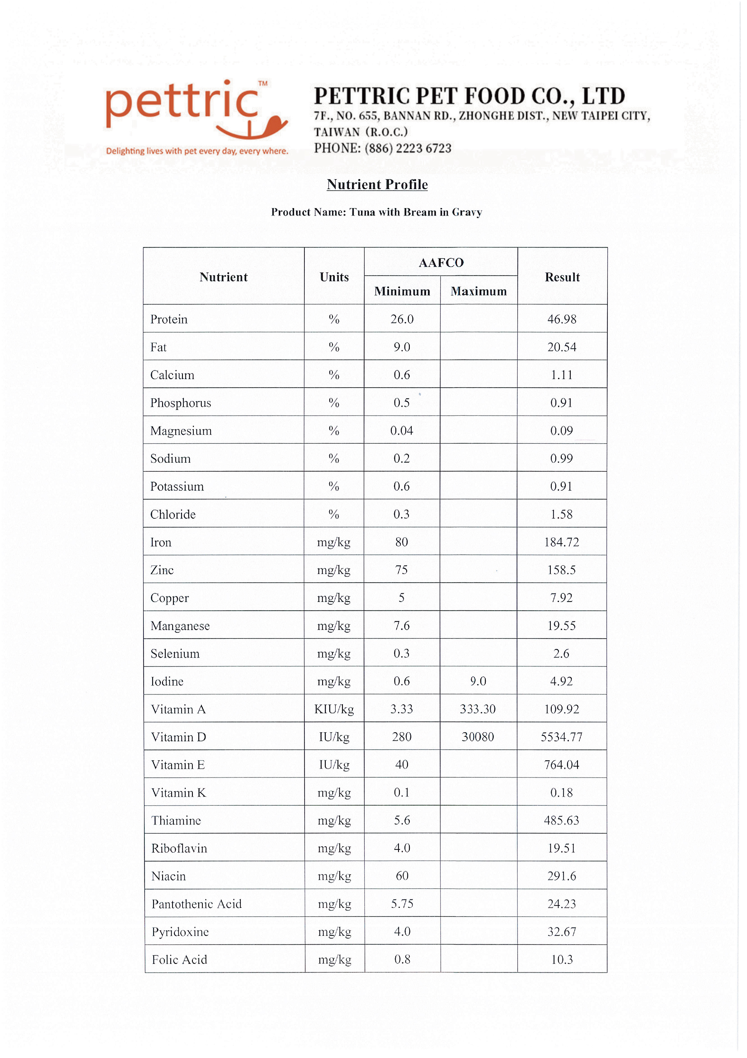 符合AAFCO每日主食營養標準,並獲得國際食品安全認證
